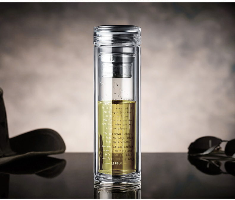 7天連鎖酒店定做雙層便攜隔熱帶網(wǎng)玻璃茶杯