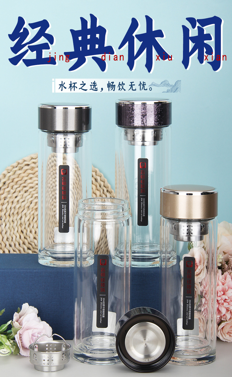 424雙層加厚隔熱水晶玻璃杯高硼硅禮品杯廠家批發廣商務水杯