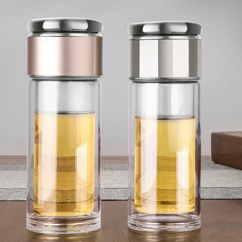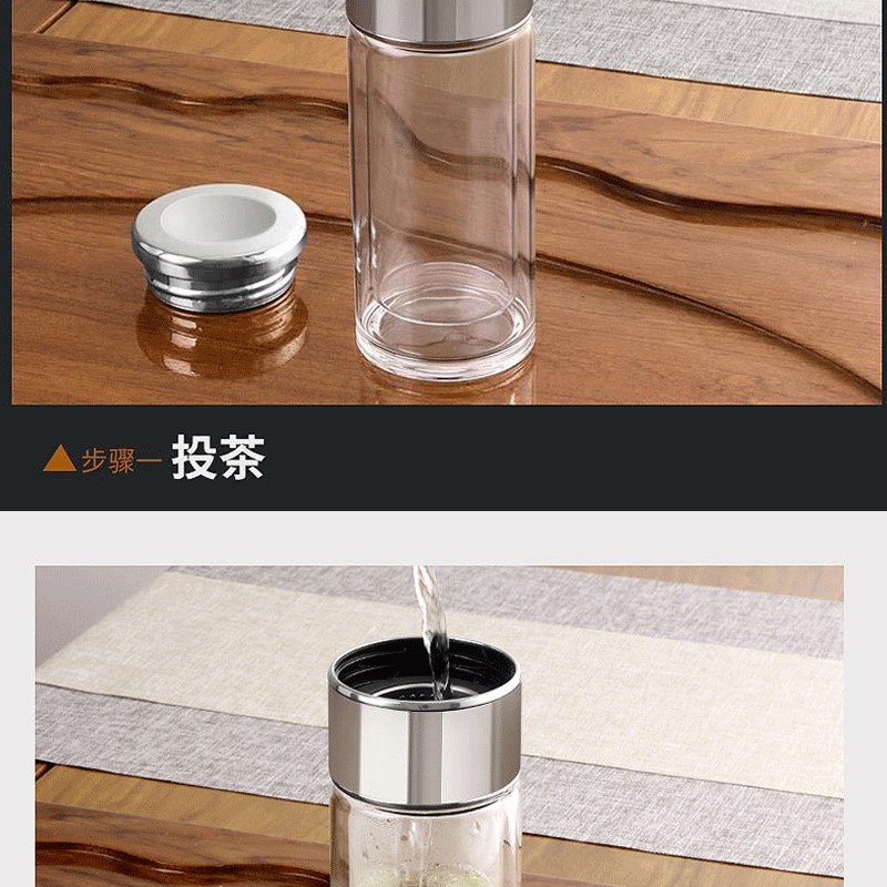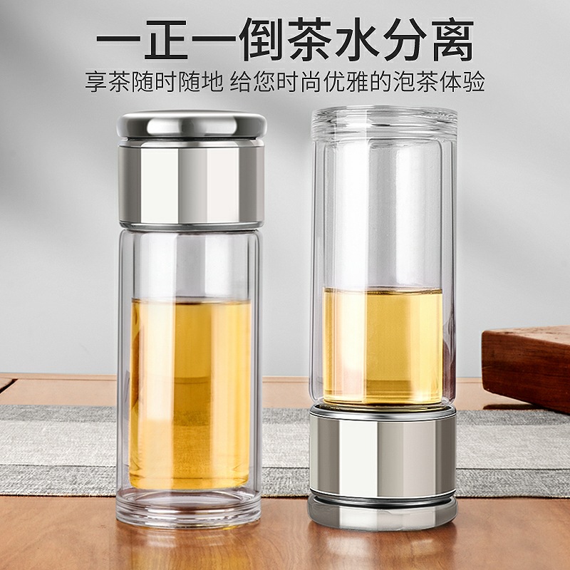 網紅茶水分離杯雙層玻璃杯家用透明玻璃水杯商務禮品茶杯隔熱