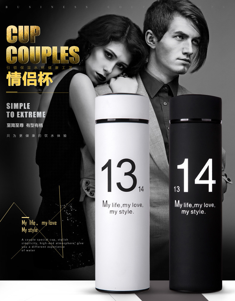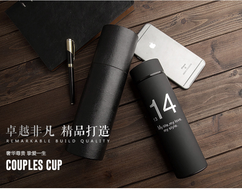 情侶不銹鋼真空禮品杯保溫杯男女士簡約直身水杯禮盒