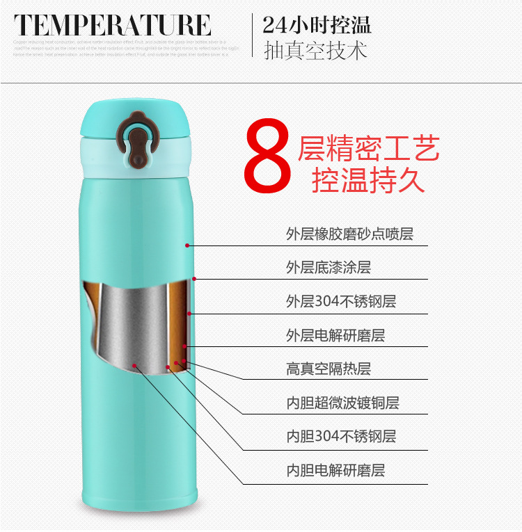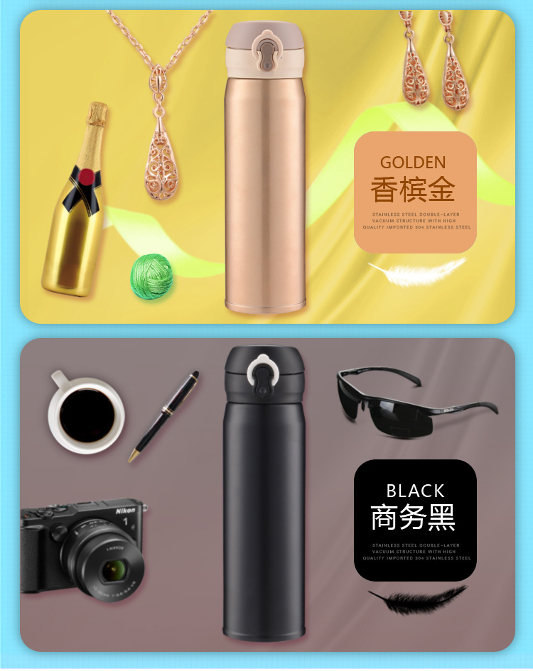 廠家直銷新款彈跳雙層不銹鋼保溫杯 直飲隨身杯 辦公車載杯刻字杯