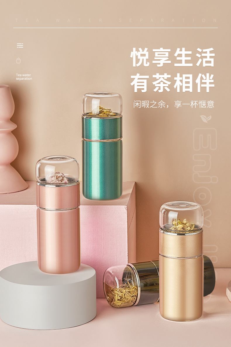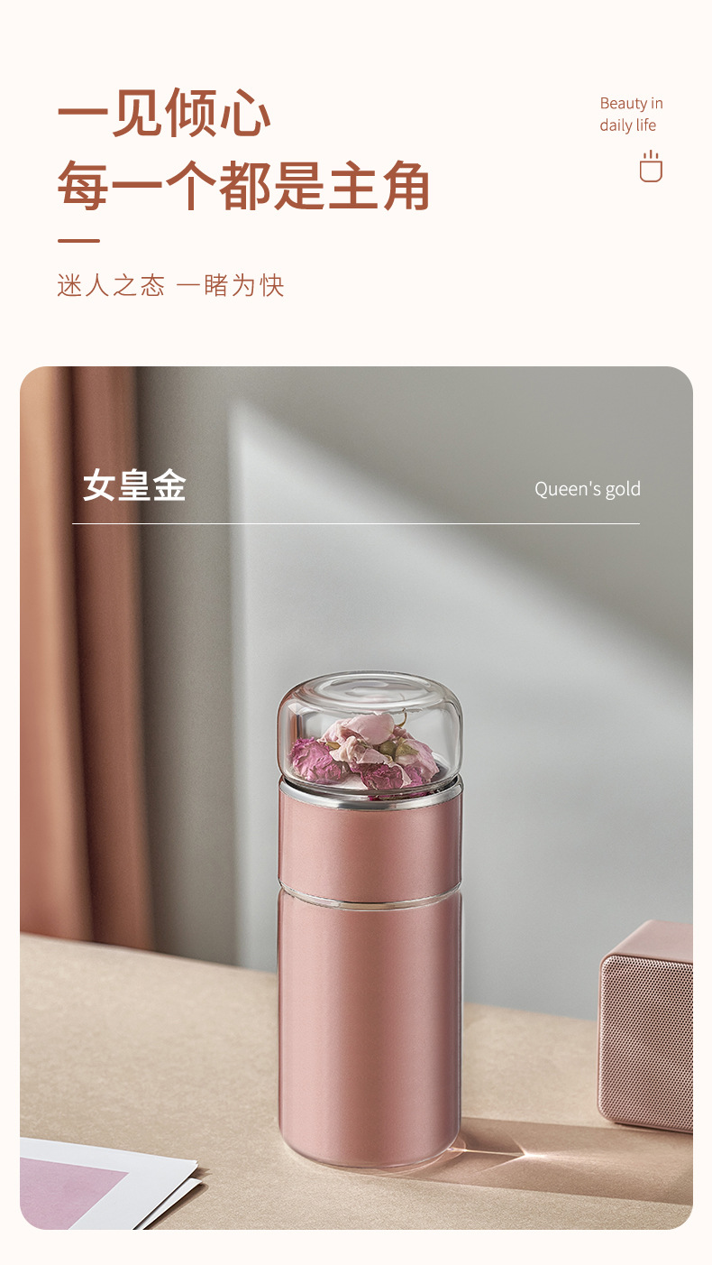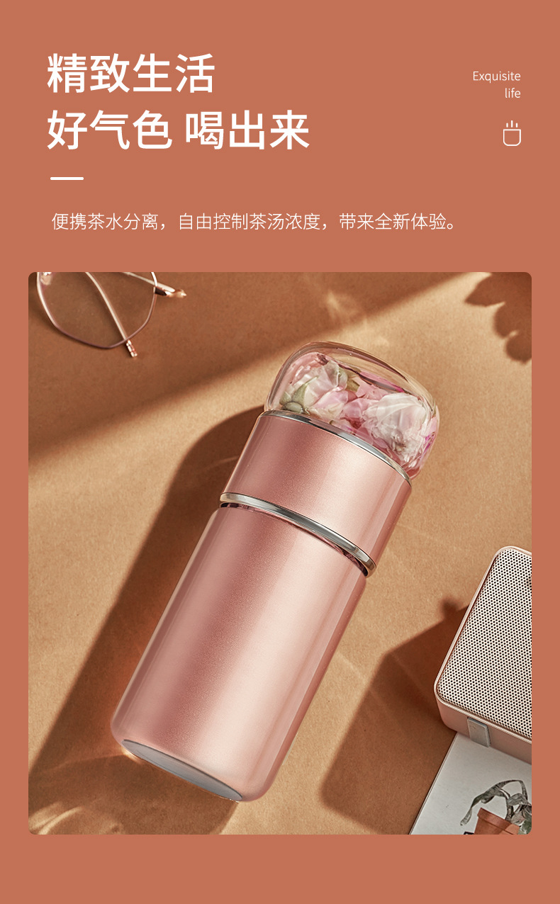 茶水分離泡茶杯子 便攜簡(jiǎn)約雙層玻璃不銹鋼保溫杯花茶過濾隨性杯