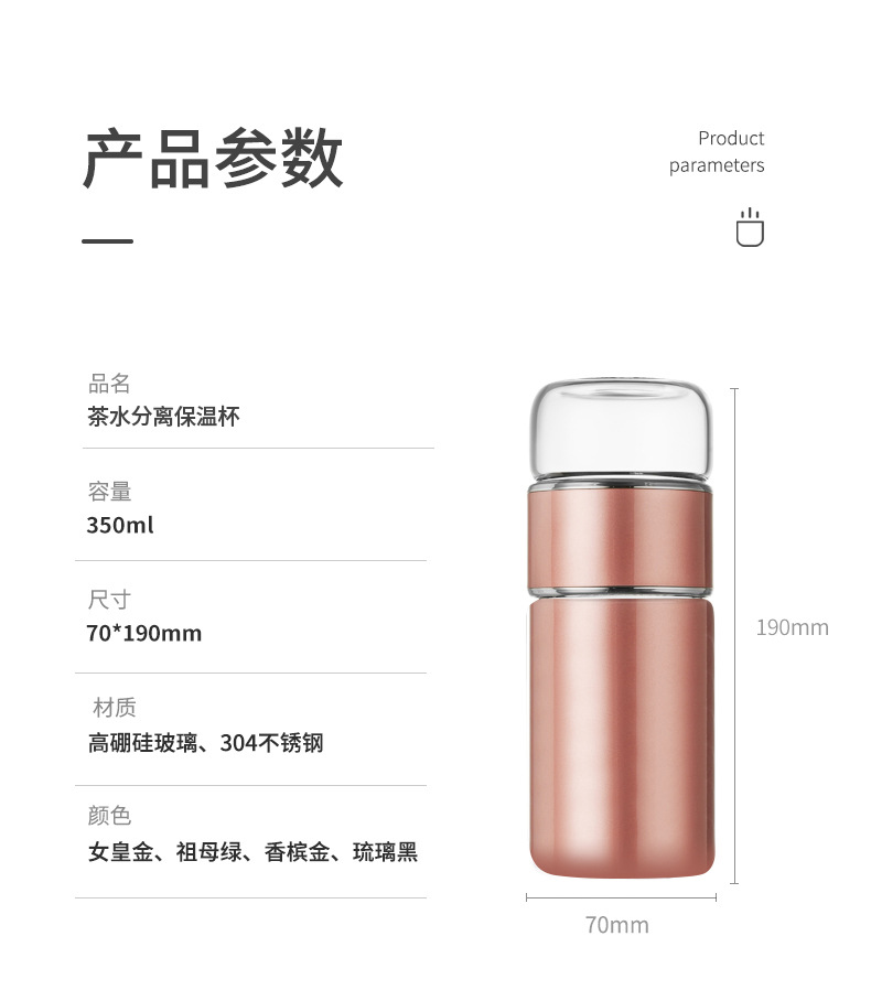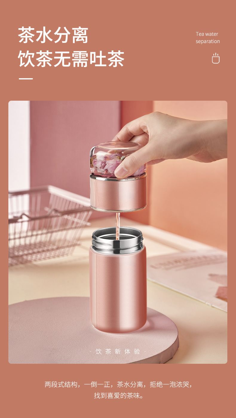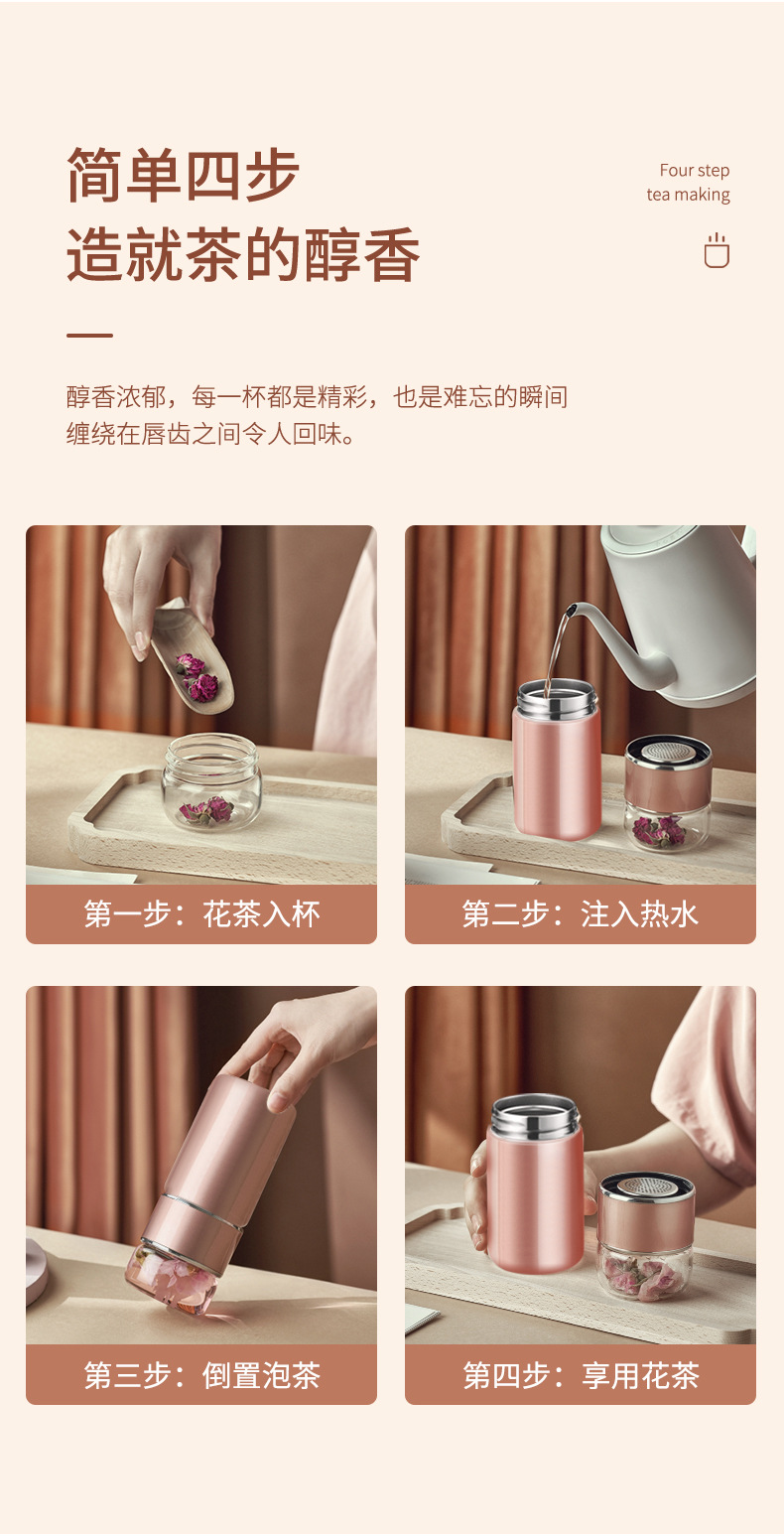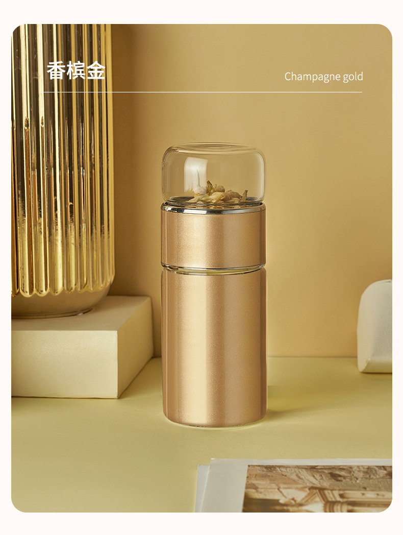 茶水分離泡茶杯子 便攜簡(jiǎn)約雙層玻璃不銹鋼保溫杯花茶過濾隨性杯