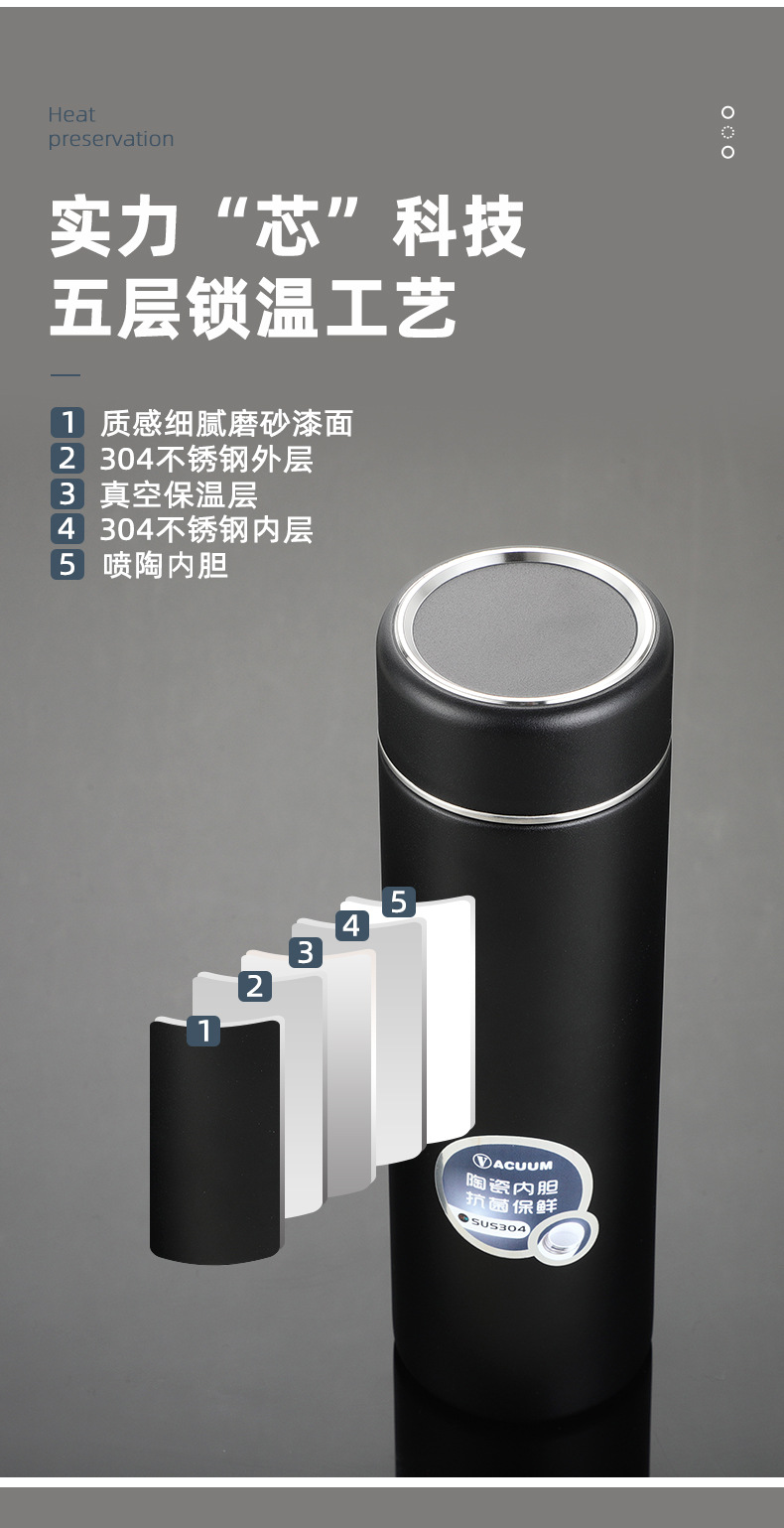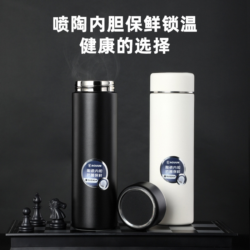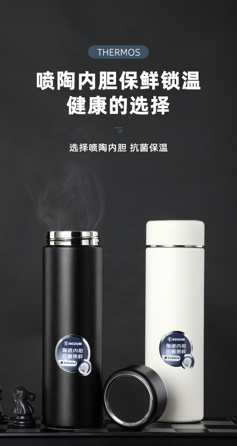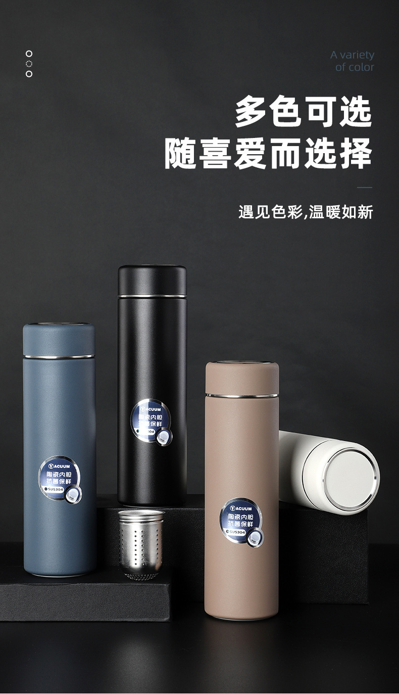 不銹鋼茶水分離杯泡茶杯噴陶內膽保溫杯 商務男士禮品水杯子500ml