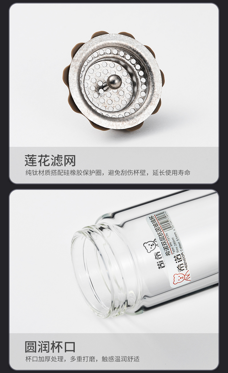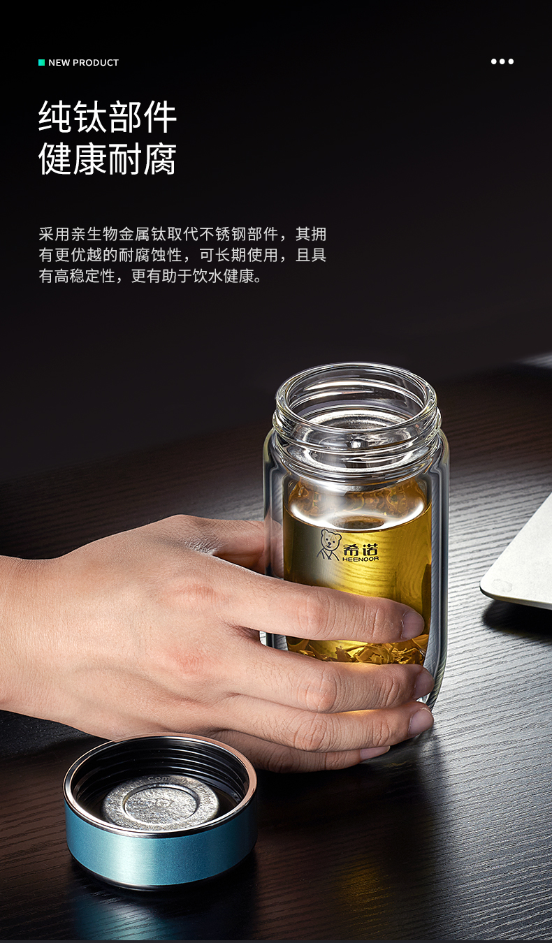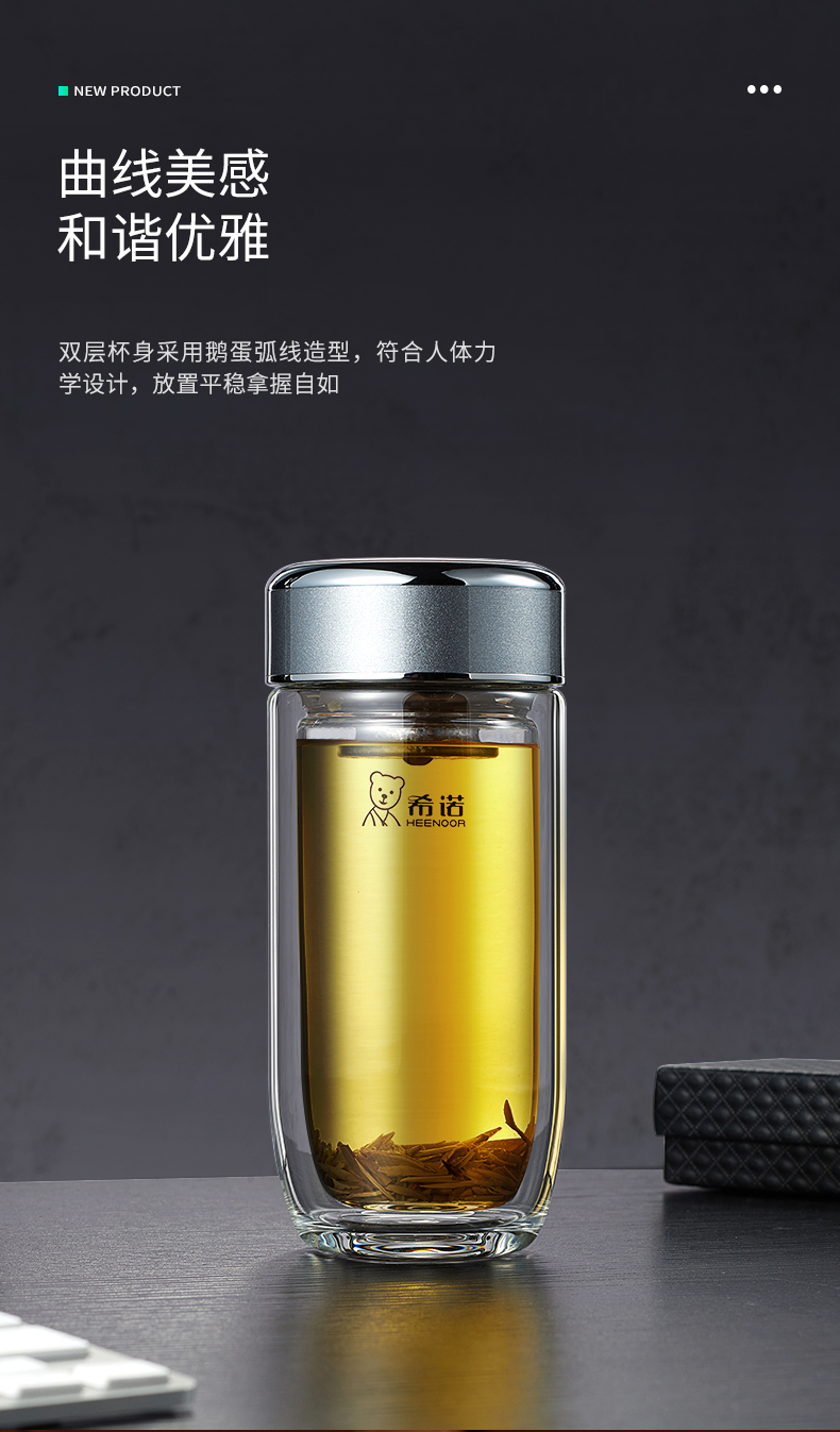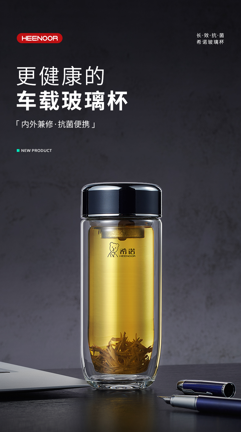 希諾雙層抗菌玻璃杯隔熱男女士高檔車載水杯便攜杯子帶濾網(wǎng)茶杯